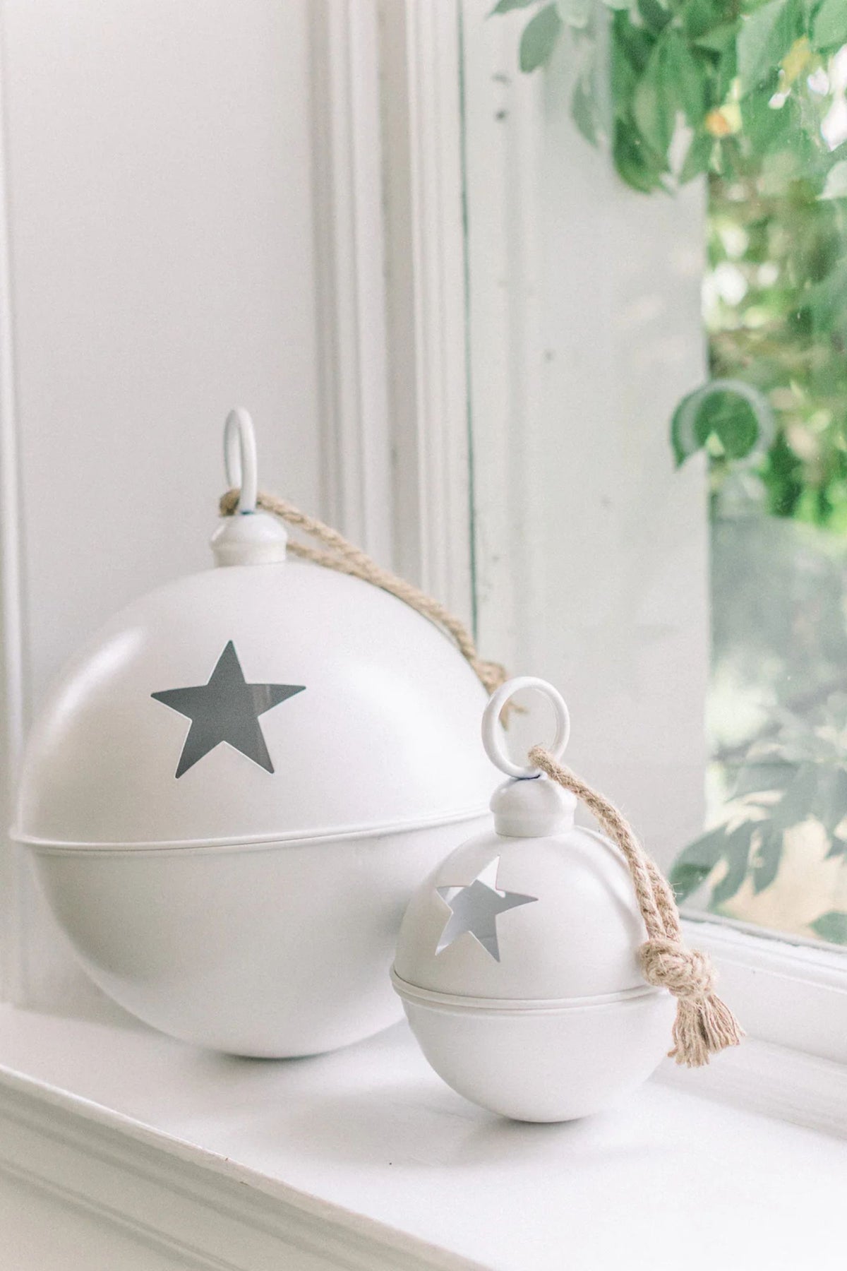 Bring playful charm and contemporary style to your festive décor with these oversized White Iron Star Baubles. Made from matte-finish iron and detailed with cut-out black stars, they’re a modern twist on the traditional Christmas ornament.