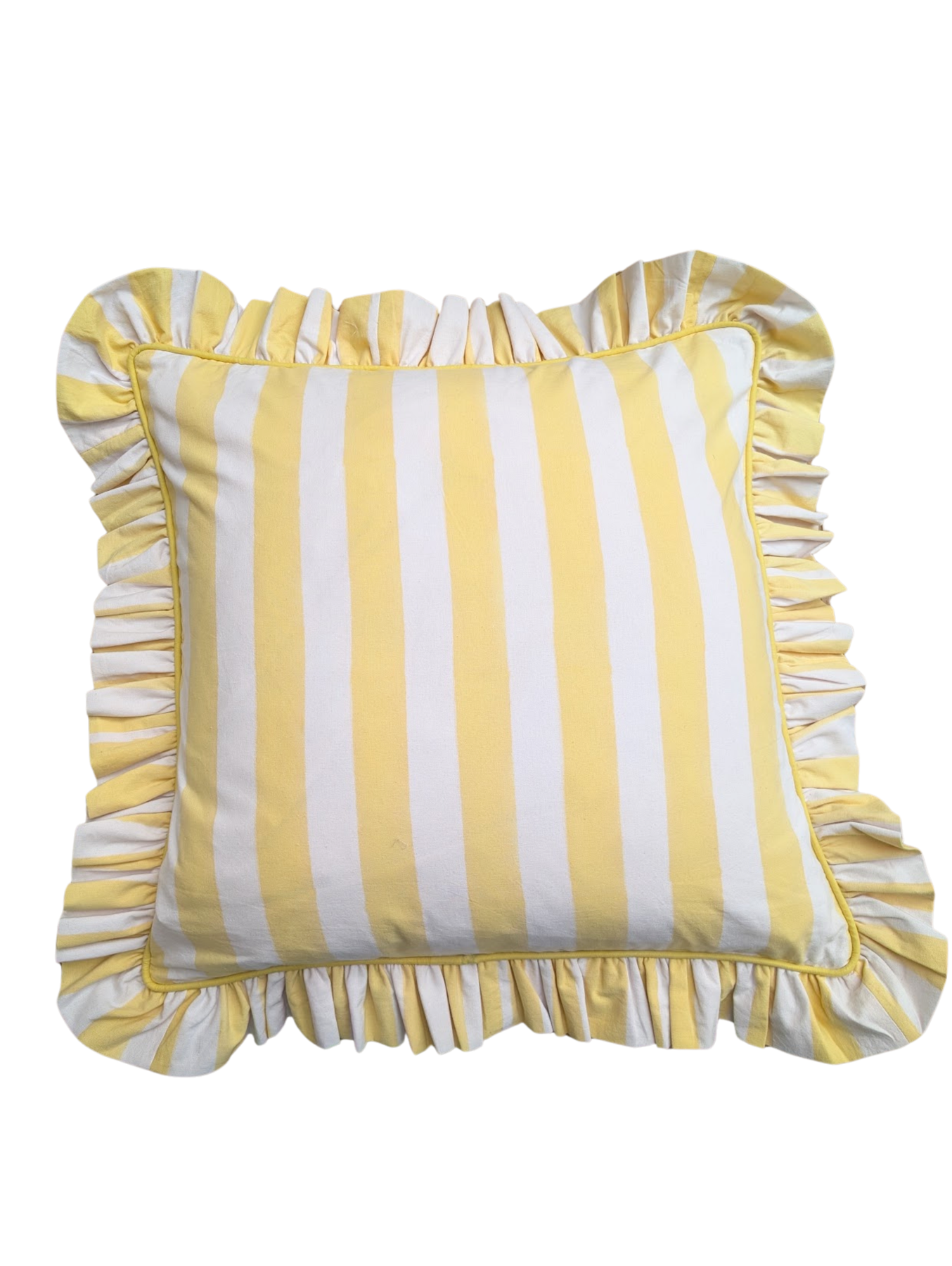 Lemon stripe Frill Cushion Cover