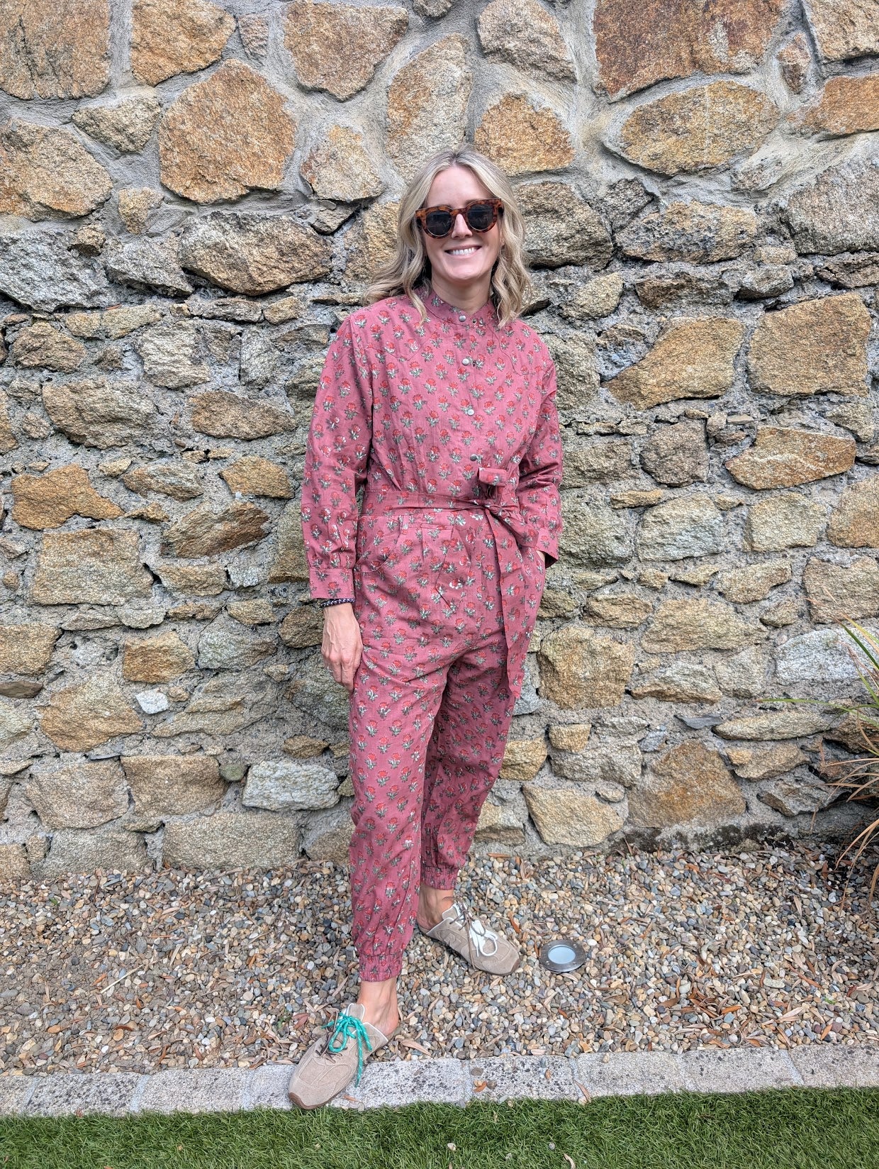 Discover the Hazel Maroon Jumpsuit, a beautifully handcrafted long-sleeve piece that celebrates artisanal tradition. Made from 100% cotton and hand-printed by skilled artisans in Jaipur, every jumpsuit features unique detailing and a flattering belted waist. As part of our small-batch collection, each piece brings authentic craftsmanship and playful character to your wardrobe.
