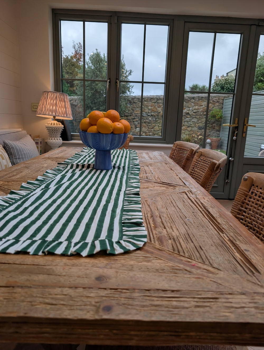 Iris Blue Stripe Frill Table Runner | LNH Edit