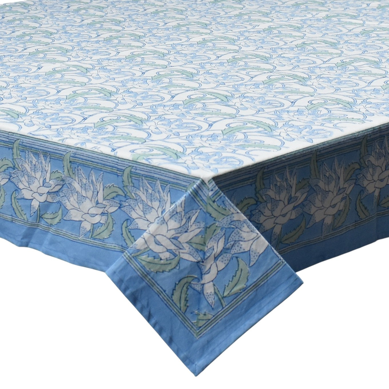 The Jessica tablecloth is a printed tablecloth in beautiful green and blue tones. It has been hand block printed in India by talented artisans. As it is hand printed, each tablecloth will have unique look.