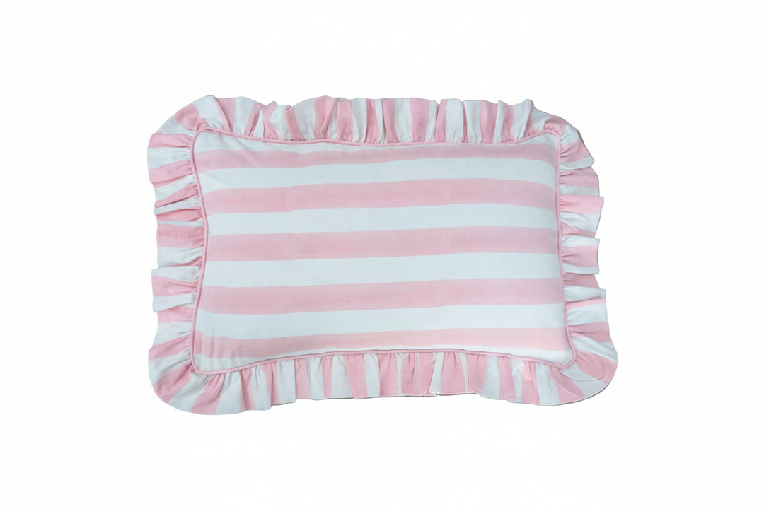 Pink stripe Frill Lumbar Cushion Cover