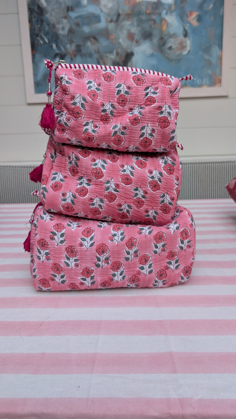 Blue stripe Cosmetic Bag- Set of 3
