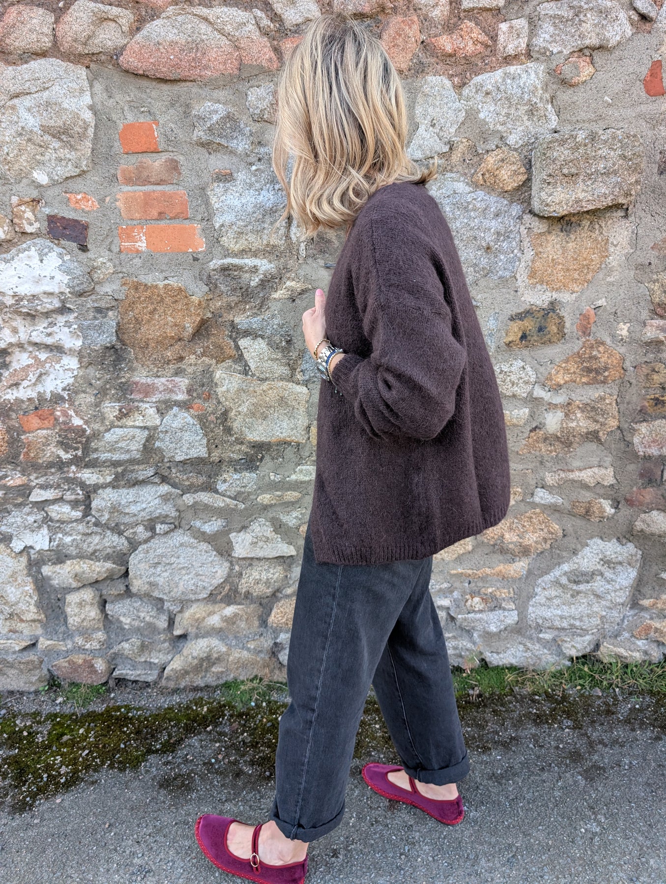 Super cosy and stylish longer length oversized mohair cardigan. Perfect layering piece for the colder months