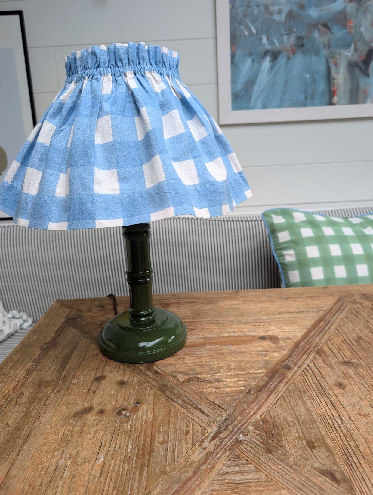 Bring charm and colour to your interiors with our Gingham Blue Lampshade Cover. Hand block-printed in India, this cotton shade features Blue gingham for a fresh, spring look. Designed to slip over your existing lampshade including LED lamps, it instantly refreshes any space - from bedside tables to living rooms.