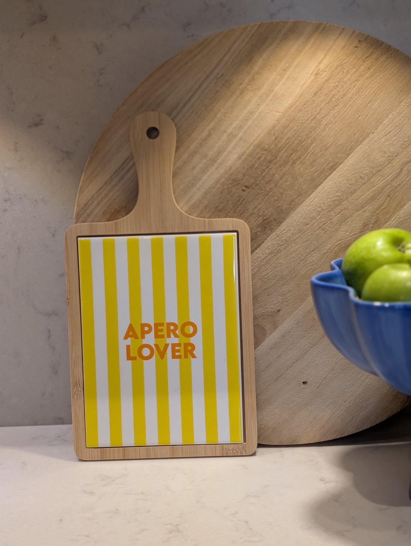 Yellow Apero Lover Bamboo board. Perfect for sweet treats , cheese and more