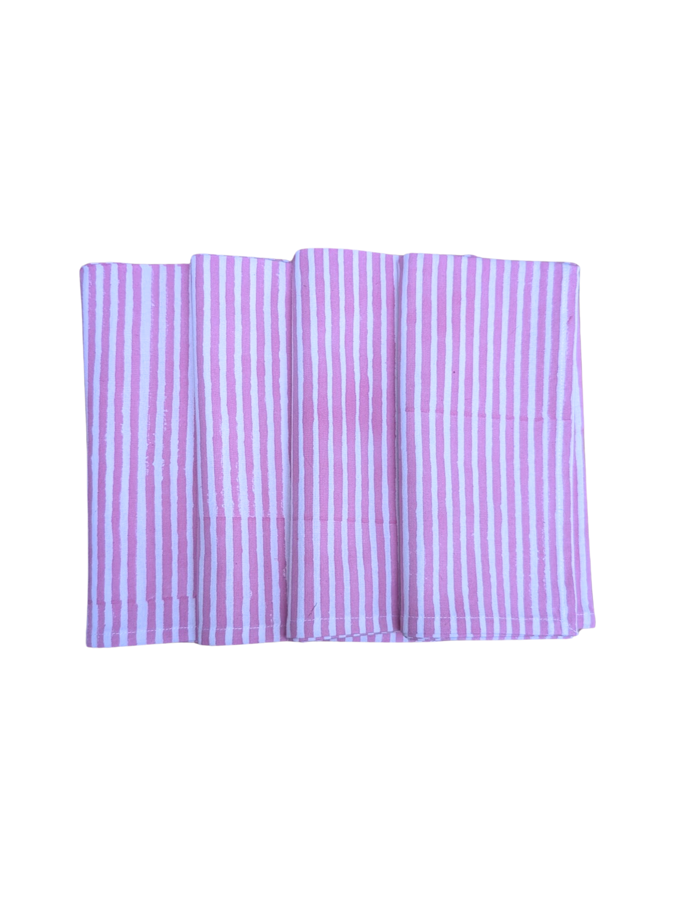 The Pink Stripe napkins are handmade printed Indian block print in pink . As they are hand printed, each set will have unique look.