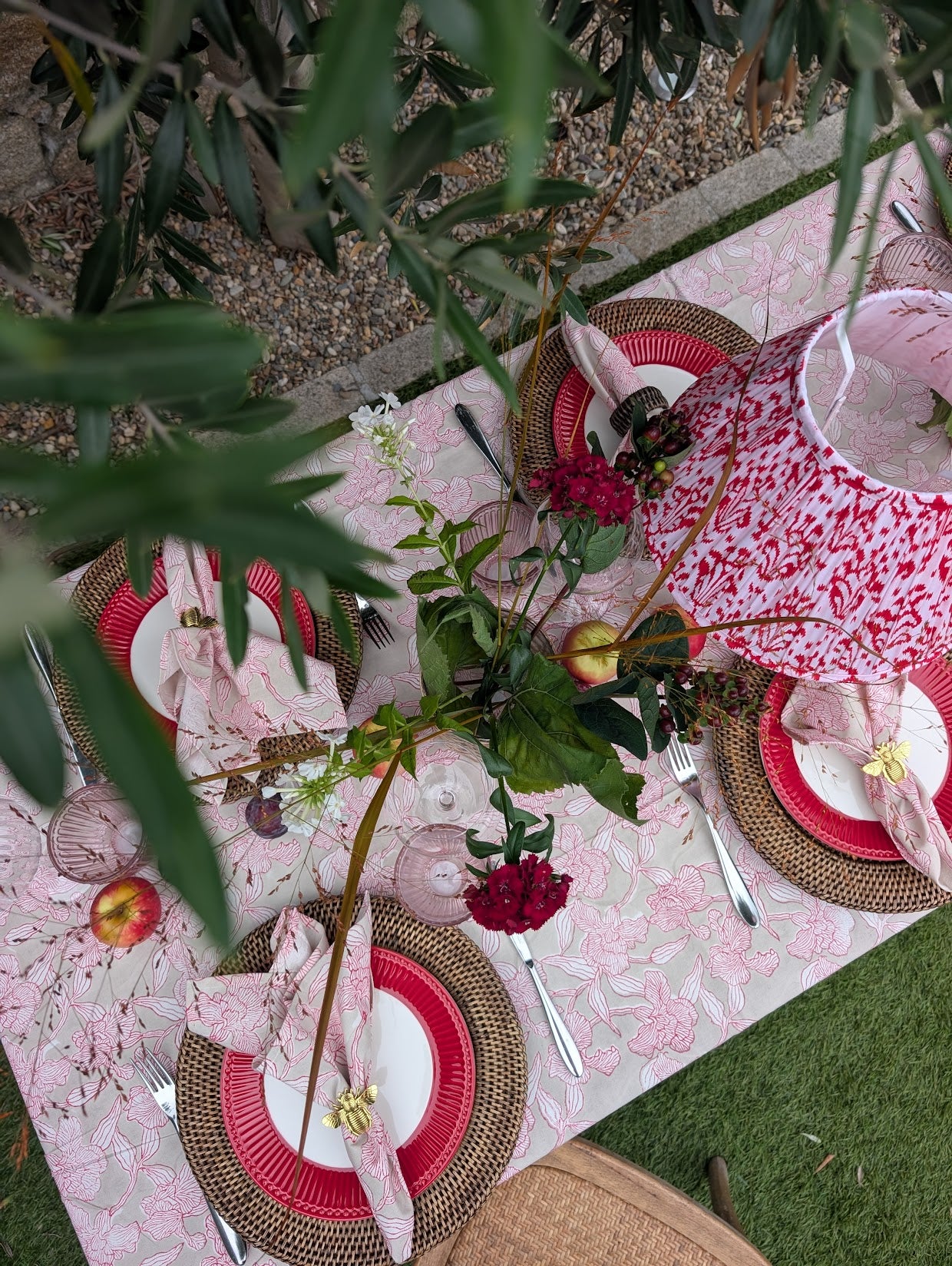 The Ophelia napkins are handmade floral printed Indian block print in beige and raspberry pink tones. As they are hand printed, each set will have unique look. Set of 4.