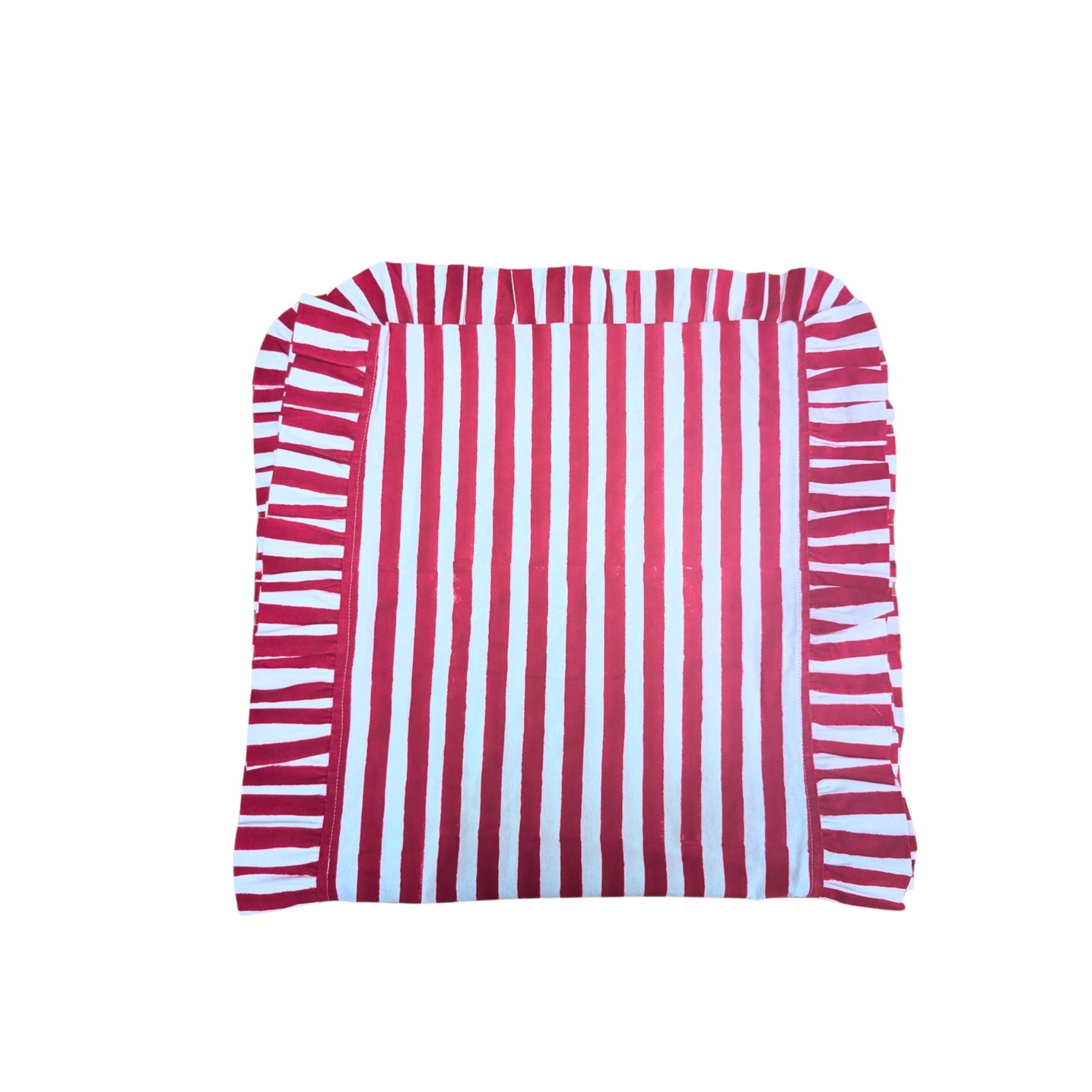 Make your table the heart of festive gatherings with our Holly Red Frill Table Runner. Hand block-printed in bold red stripes on crisp white cotton, this cheerful piece brings a playful yet timeless touch to your Christmas or everyday dining.