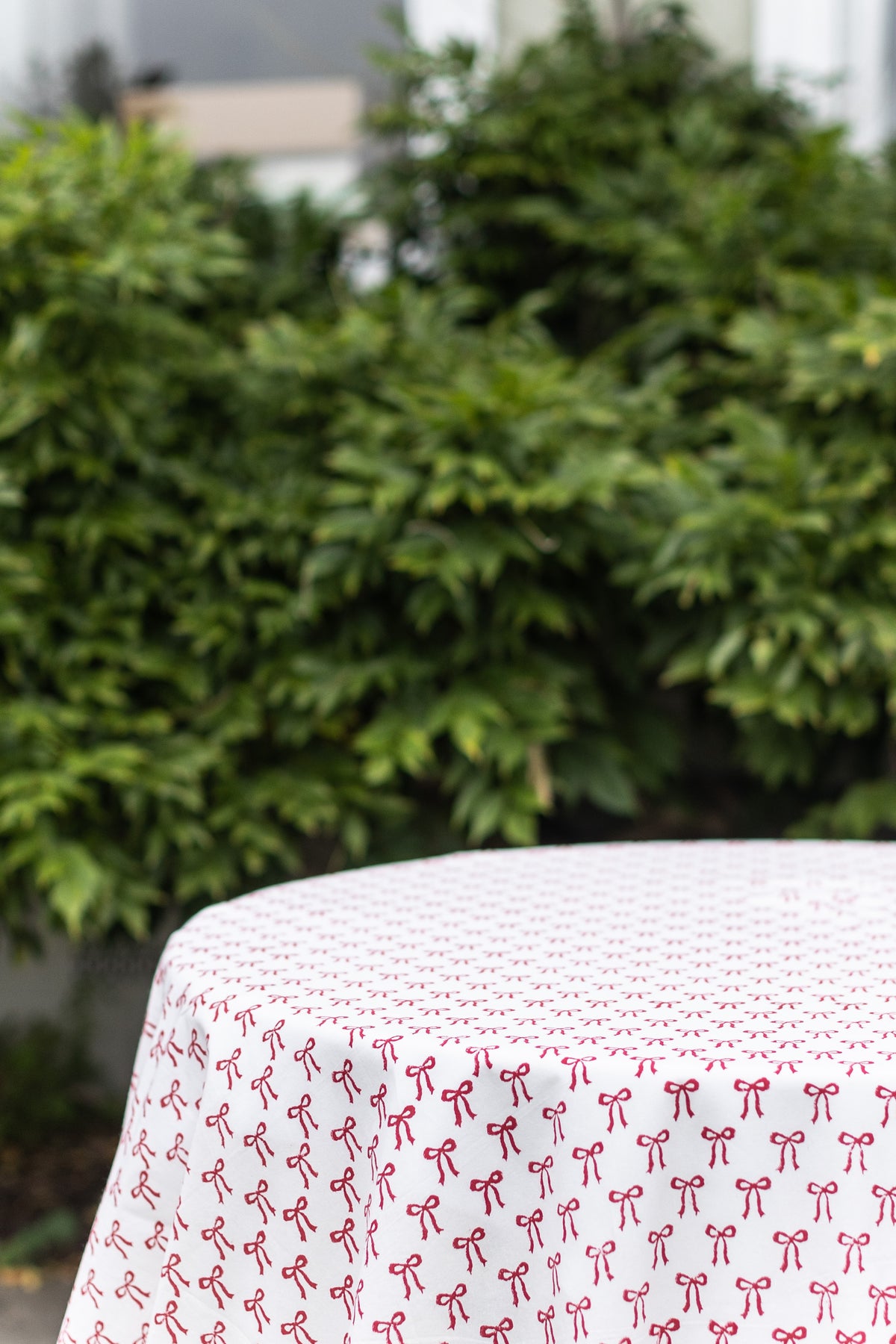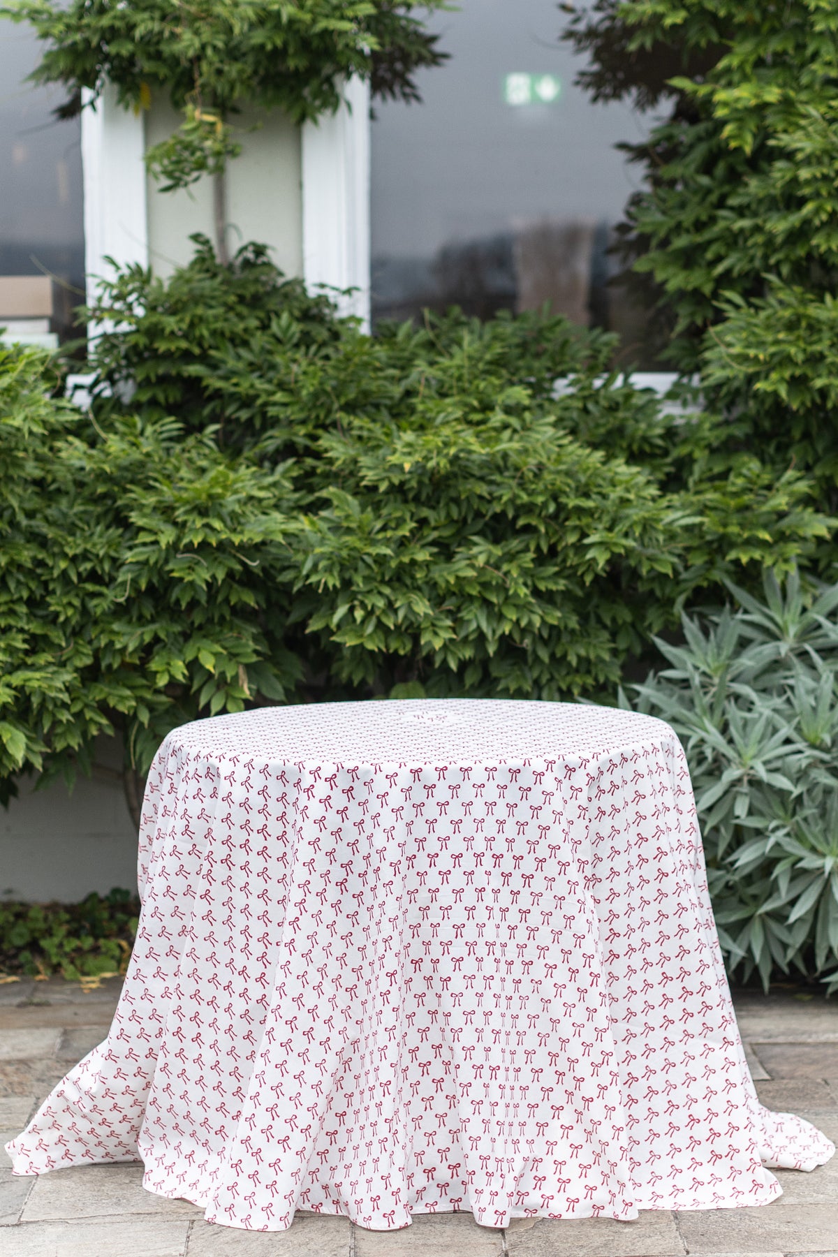 The Thistle blue tablecloth is a printed round tablecloth in blue chinoisery print on a cream base. It has been hand block printed in India by talented artisans. As it is hand printed, each tablecloth will have unique look.