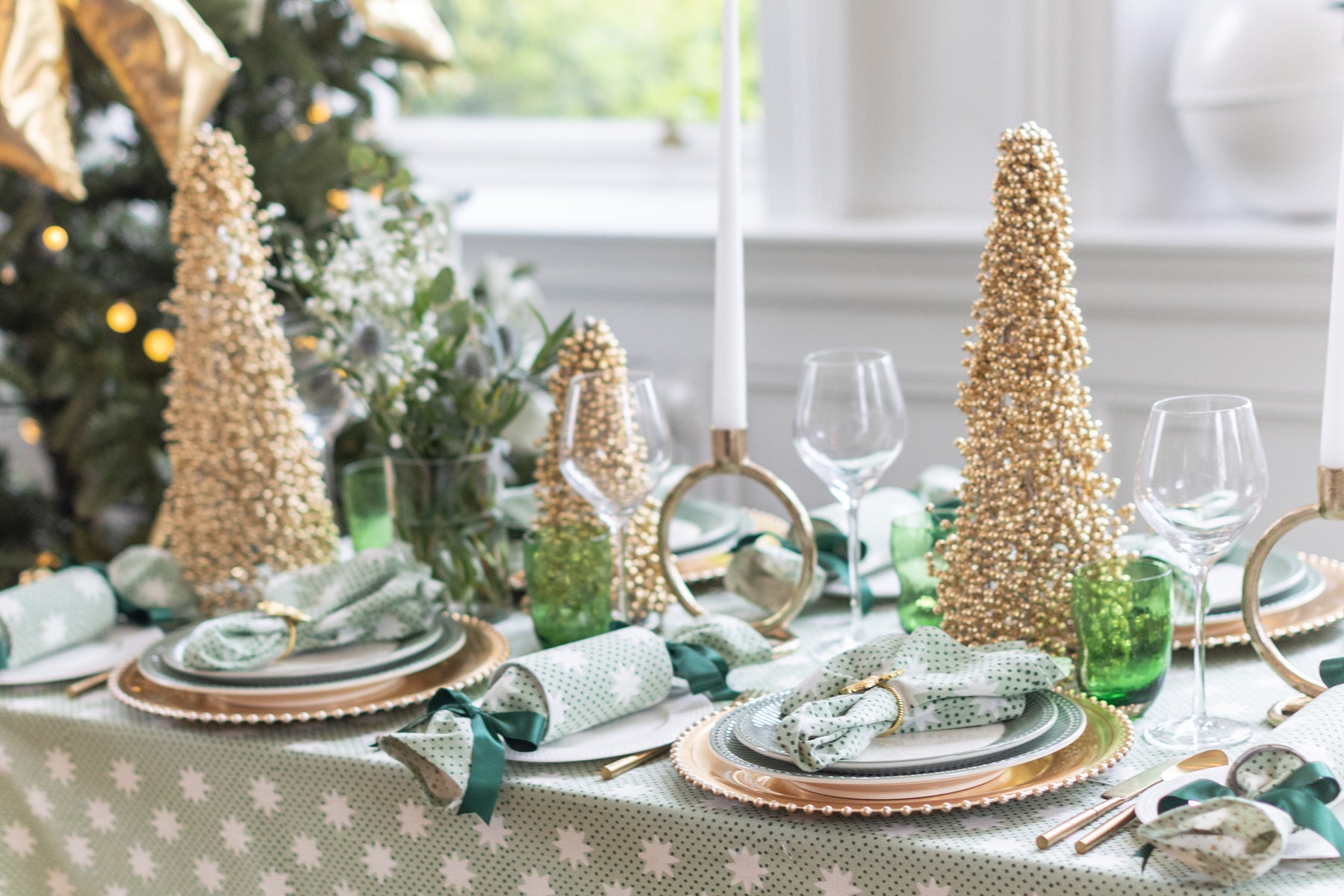Add a touch of sparkle to your festive styling with these elegant gold beaded trees.