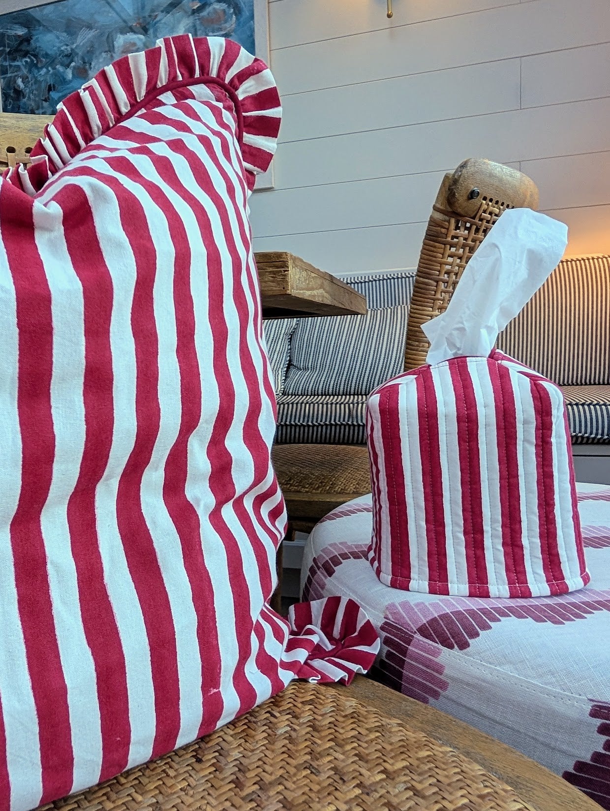 Add a splash of charm to your space with this cotton tissue box cover, featuring a striking red and white striped print. Soft, breathable cotton keeps your tissues cozy while the vibrant pattern brings a fun, fresh vibe to any room. Perfect for brightening up your desk, bathroom, or bedside table with a touch of nature-inspired whimsy.