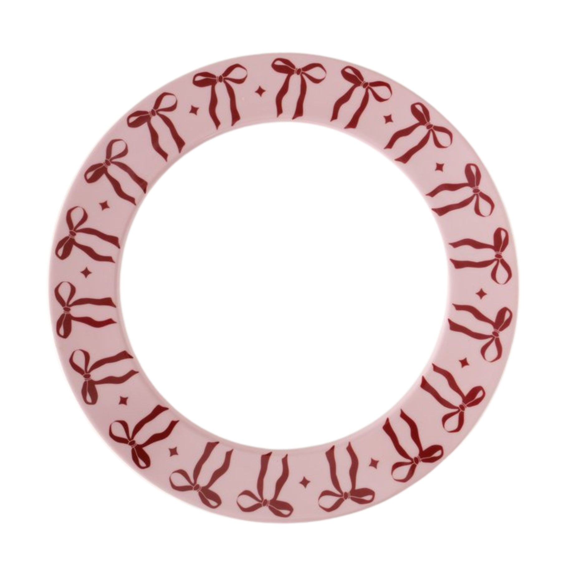 A statement piece for your festive table — this elegant plate features a soft blush-pink rim adorned with red ribbon motifs.