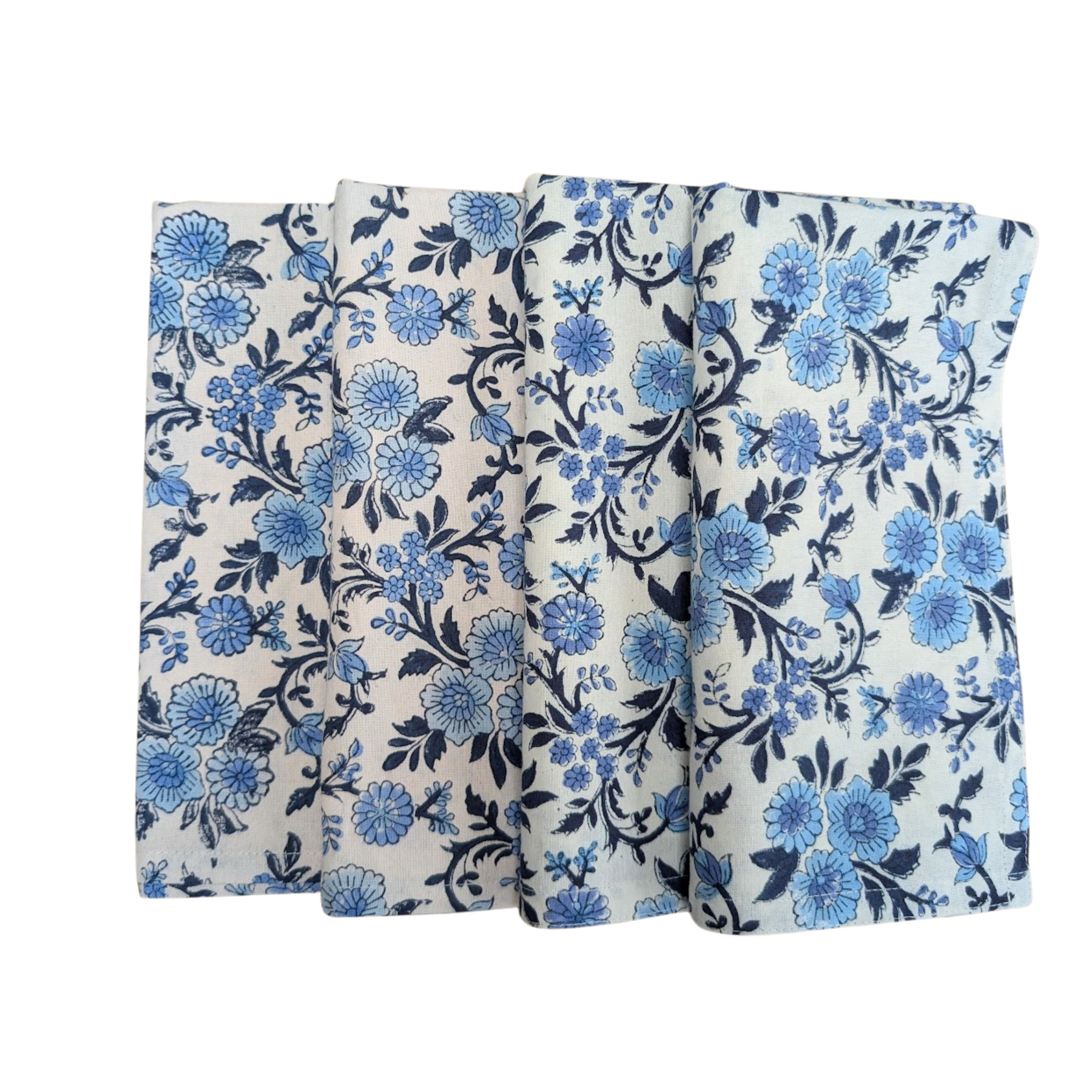 The Thistle napkins are handmade printed Indian block print in a gorgeous blue chinoisery floral pattern. As they are hand printed, each set will have unique look. Set of 4.