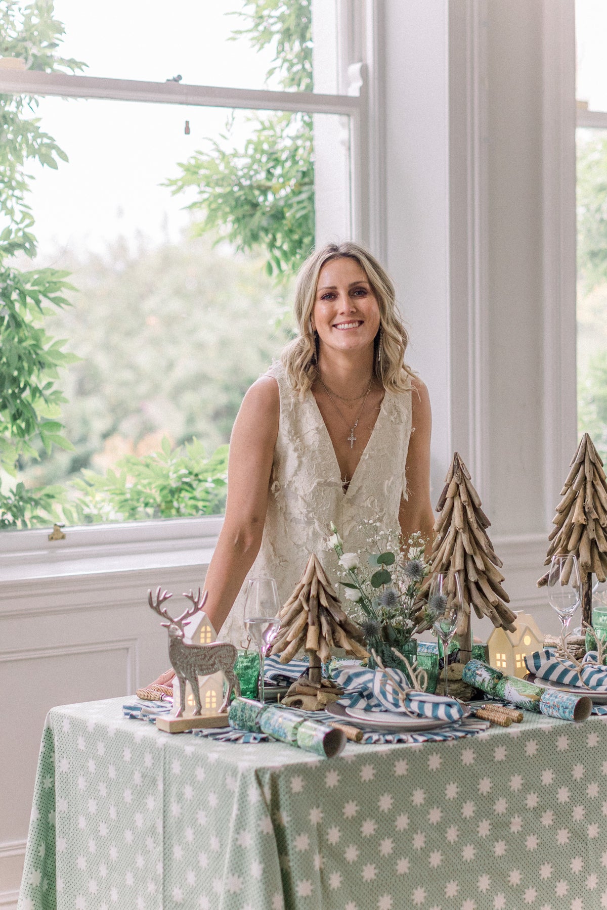 Styling Tip: Cluster with greenery, candles, and miniature trees for a Scandinavian-inspired Christmas glow.